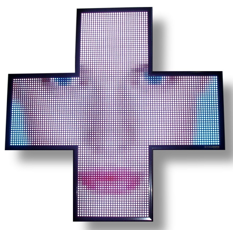 - Grafica full-color, bicolor e monocolor con passo led 10 mm e risoluzione 96×96 pixel