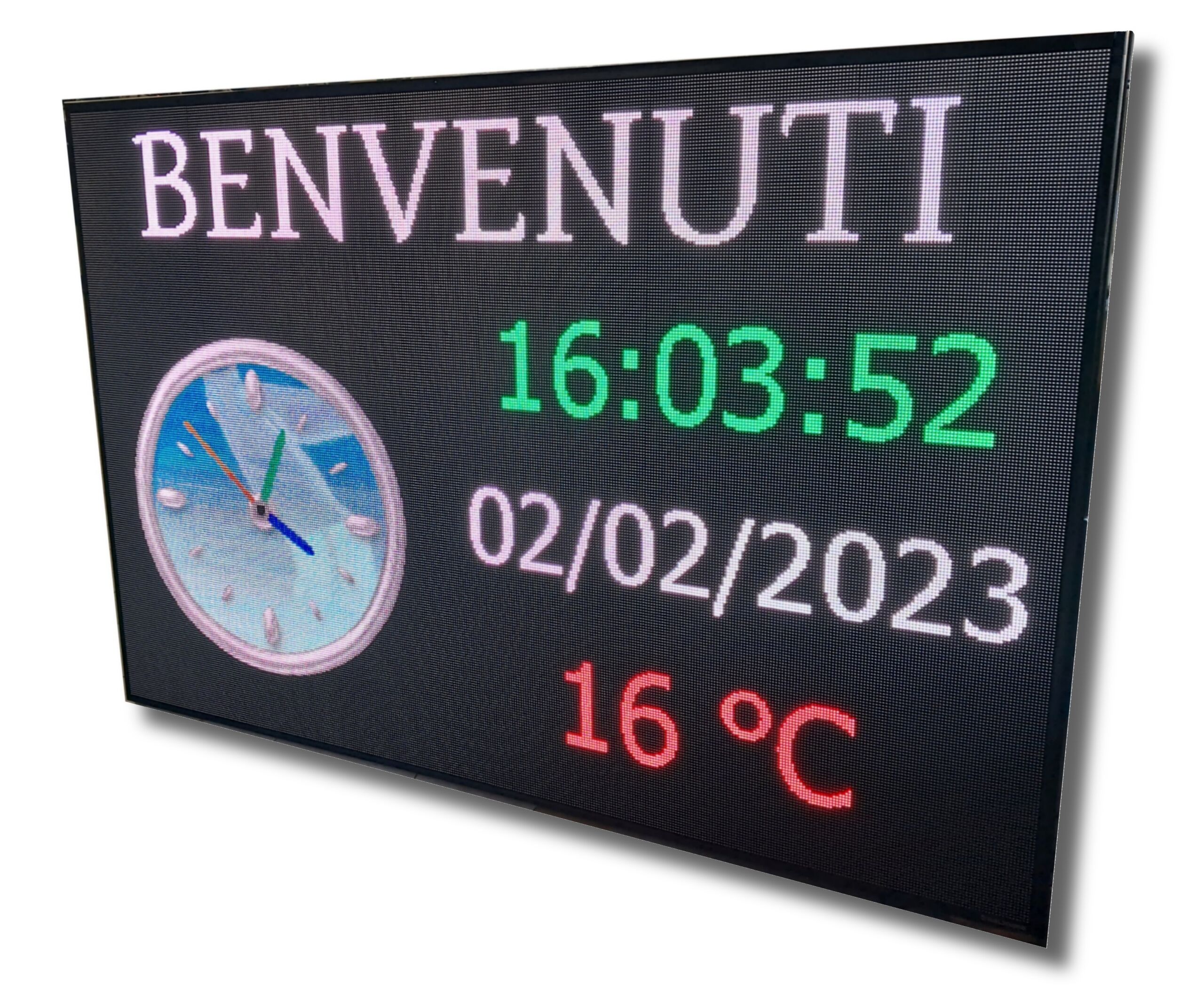 - Funzioni: video (a richiesta in tempo reale), immagini vari formati, testi con colori e font vari